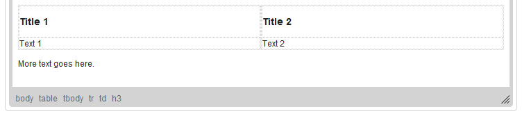 The figure below shows the editing area of CKEditor after inserting the template called "Strange Template" that defines a t wo-column-layout with headings and a text placeholder. Since the Replace actual contents option was selected, the template replaced the text that was previously entered into the editing area.