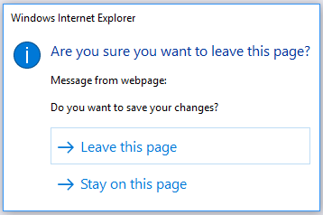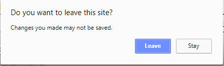 If changes have been made to a page and not saved when a user navigates away from the page, a message is issued by the browser or the editor.