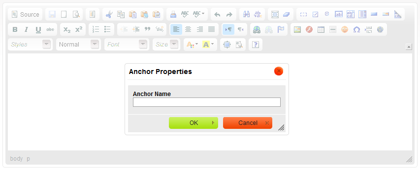 As an example, the Anchor dialog window is presented below: