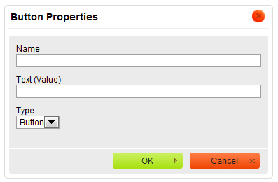 toolbar button. The Button Properties dialog window that will open lets you set the name, value, and type of the button element.