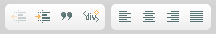 In CKEditor the text layout features are grouped together on the toolbar. Most are simple buttons that turn the layout option on and off when you click them.