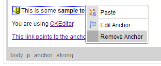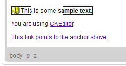 CKEditor supports placing anchors in document text. To insert an anchor, press the