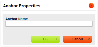 In order to create an anchor, enter its name in the Anchor Name text box. Once you click OK, the