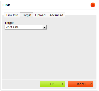 The Target tab is only available for the URL link type. It specifies the location where the link will open after you click it. By default the target of the URL is not set and the link will open in the same browser window or tab as the document.