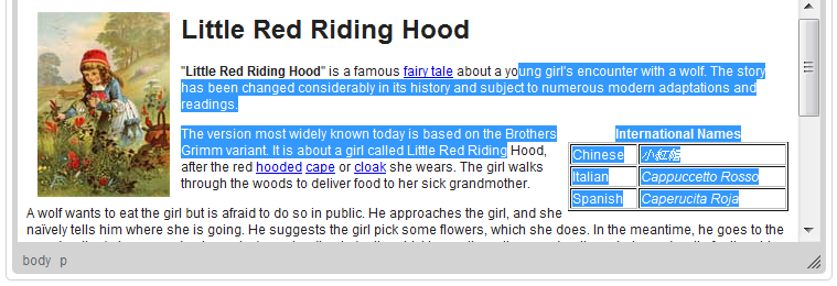 When you want to apply a formatting method to a larger text fragment, you can select it. CKEditor supports a few selection methods that you can use.