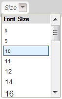To change a font size for a text fragment, open the Size menu by clicking the Size button on the toolbar. The font size drop-down list contains a number of sizes that you can use. To make the choice easier, the items of the list are displayed in a font size that they represent, giving you a preview of what the text will look like.